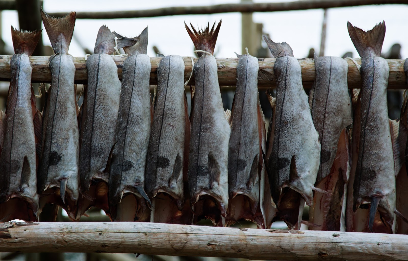 cod drying on a wooden rack |